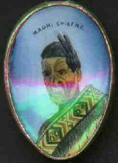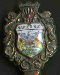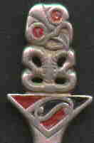 This cute spoon from Napier, New Zealand features a hand painted image of a Maori Chief. Note: the discoloration in the photo is a result of the scanner which is unable to pick up the detail on a curved surface, and not on the spoon.This spoon is silver plated.