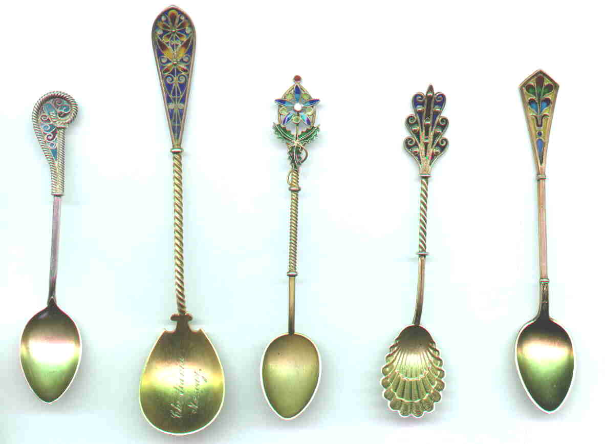(make sure you see the spoons on the right by using the bar at the bottom of the page-the rightmost spoons have plique-a-jour at the finial and in the bowl)
