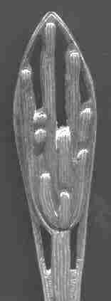 The cactus is an unusual strain of plant which primarily lives in the southwestern deserts of North America (southwest USA and Mexico) and it is typically found in hot dry low-rainfall type of climates. Over 1000 varieties of cactus are known, but most spoons only picture the more well known and massive types. For the eastern tourist visiting these lands, the cactus was a very strange looking plant that truly represented the region.
