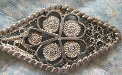 There are no markings on the spoon to indicate origin, but the silver workmanship is pretty good with nice wire woundings.