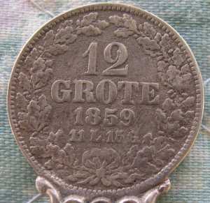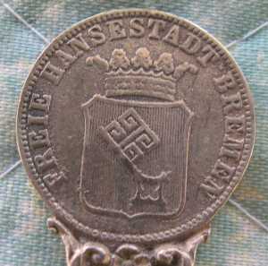 This spoon also features an 1859 12 grote coin from Bremen at the finial