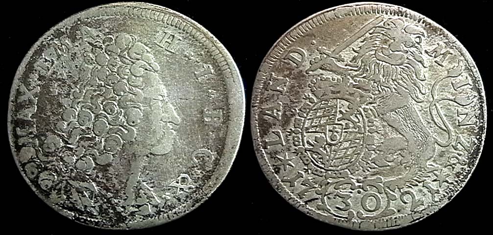 Emanuel Maximilian II (1679-1726), 30 Kreuzer, draped bust of the king