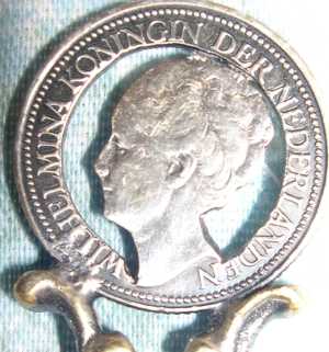 in the bowl we find a 1 Guilder coin (the date is missing because of