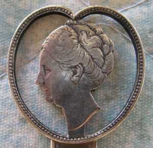 The finial is a cutout bust from a 1941 10 cent silver coin.