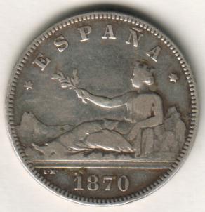 Front of the 1870 peseta coin