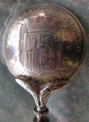 Cute Spanish spoon with a one peseta coin bowl