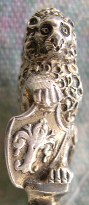 The finial is a lion with its paw on top of a shield