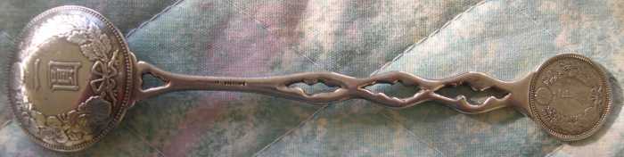 The finial is a 20 Sen silver coin and the bowl is a large 1 yen silver