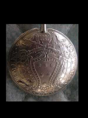 Nice wire wrapped spoon featuring a Pope Clements xii coin dated 1736 .