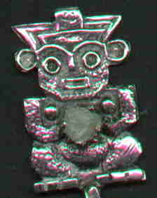 This set of six demi-tasse spoons are hand made by the Plateria Ramirez firm. Each of the finials represents a different city in Columbia and each has a natural emerald mounted on it. The pictures are grey scale so that they download faster.
