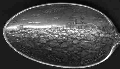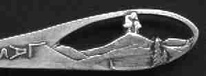 Pikes Peak was a favorite tourist location around the turn of the last century. In spoon collecting we find a number of spoons from this area, and some have been shown in other exhibits. In this part of Colorado is an area of high erosion called the "Garden of the Gods" which has created some fantastic shapes. Below are two engraved spoons from this area showing the "Garden of the Gods" and "Balanced Rock".