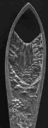 This cute hand made spoon features a "balanced rock "finial. I though the "square knotted" handle was cute and unusual. The bowl also has an embossed picture of the Garden of the Gods