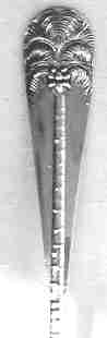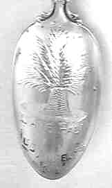 Certain generic images develop which make people think of specific areas. If I say "Statue of Liberty", everybody thinks of New York. If I say "movie making", everybody thinks "Hollywood", despite the fact that movies are made all over the world. For wealthy easterners around the turn of the century, California and Florida were thought of as warm weather resort areas. The predominent image which exemplified those areas was the Palm Tree. Thus it is not particularly surprising that we have a number of images of palm trees on souvenir spoons.