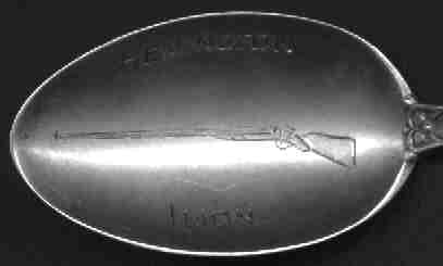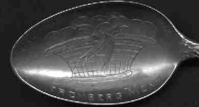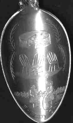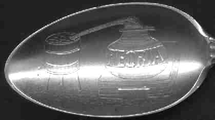 These spoons are describing a product (s) which is widely produced in a small geographic area. These spoons are differentiated from advertising spoons which are promoting a specific product and which were produced by the company making that product. All of the spoons shown on this page are sterling with hand engraved picture bowls.