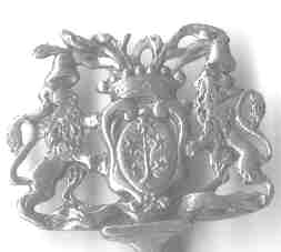 This is one of my favorite spoons. It shows a large seated figure of Britannia while a tiny subject stands nearby. This cast spoon indicates that it was made in London about 1892. There are many cast design elements of Art Nuevo throughout. Below is a picture of the whole spoon and you should also note the putti in the center of the finial.
