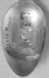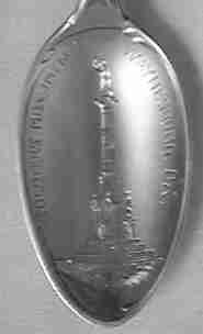 This spoon to honor Andrew Jackson is available in both tea and demi size (identical except for size). The finial shows a portrait which is labeled "Old Hickory", his nickname, and the bowl has an embossed picture of the Jackson Monument in New Orleans.