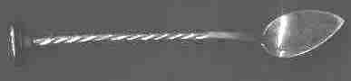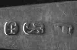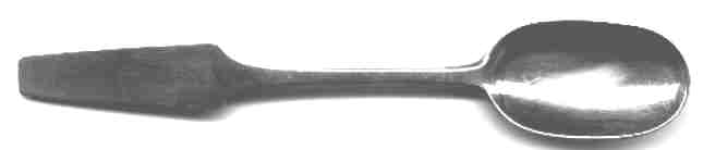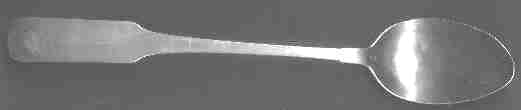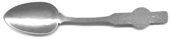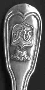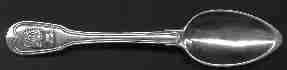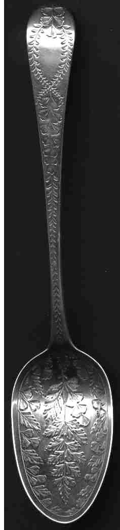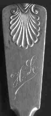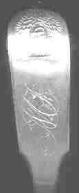 Notice the similarity in the engraving style between this spoon and the one shown above. The marks on this spoon are not complete. Our expert silver researcher, David McKinley has provided us with a better analysis. "This concerns your attribution to a spoon which you suggest is Sheffield 1829. It is, in fact, London 1781. In 1781 it was decided to "top mark" spoons and to introduce fly press marking for them. To try to circumvent fraud a double mark punch (a single punch for use with a hammer but with two images engraved at its head instead of the usual one) rather than a fly press stub was introduced for tea and other small spoons. Your maker was probably Thomas Jackson II. "
