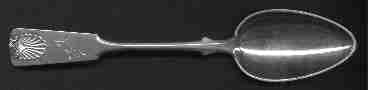 The fiddle and shell pattern was used circa 1850. There are many variations on both the fiddle and shell. It is best to consult a reference book to see all the possible variations. This serving spoon is from Finland.